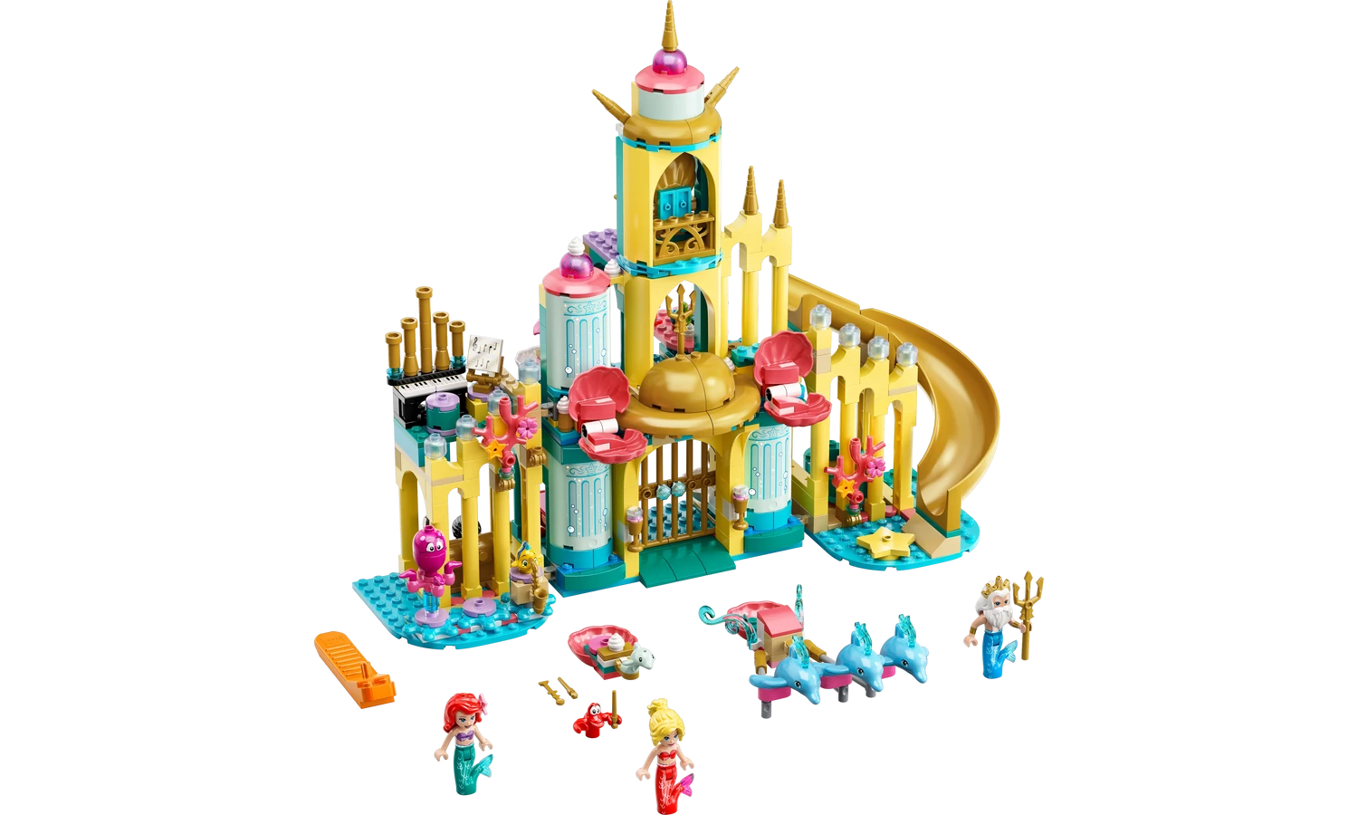 Ezzel a készlettel a gyerekek gyorsan belevághatnak a játékba Disney Ariel, Arista és Triton király minifiguráival, valamint Sebastian, Ficánka és 4 delfin LEGO figurával, így bármelyik Disney Princess rajongónak varázslatos ajándék lesz.