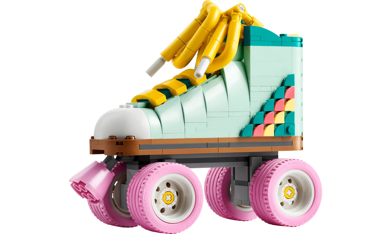A 8 éves vagy annál nagyobb kreatív gyerekek visszautazhatnak az időben a színes LEGO® Creator Retró görkorcsolya (31148) építőszettel. Tartalmaz egy LEGO játék görkorcsolyát 4 mozgó, rózsaszín kerékkel, rózsaszín fékkel és vastag, sárga fűzőkkel, valamint számos színes elemmel, amelyekkel a gyerekek a saját elképzelésük szerint díszíthetik a csizma sarkát.