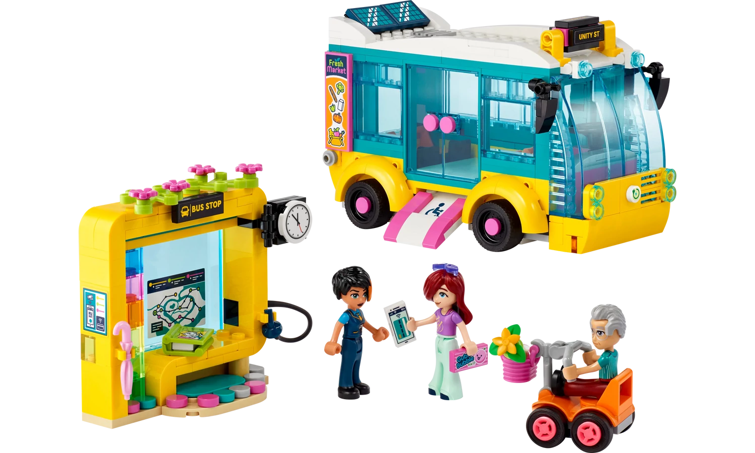 A 7 éves vagy nagyobb építőkre rengeteg játékos kaland vár ezzel a LEGO® Friends Heartlake City autóbusz (41759) játékkészlettel. A szett 3 figurát, egy megépíthető buszt és egy buszmegálló táblát tartalmaz. A busz megépítése után a gyerekek történeteket játszhatnak el a karakterekkel. Például elképzelhetik, hogy a félénk Paisley hogyan szerez önbizalmat, miközben a buszsofőrrel és egy idősebb utassal beszélget. A kiegészítők még több játéklehetőséget kínálnak, hiszen egy mozgássegítő robogót, egy rámpát, a busz „elektromos” töltőjét, Paisley könyvét, napszemüvegét és okostelefonját, egy esernyőt és egy virágcsokrot is találsz köztük.