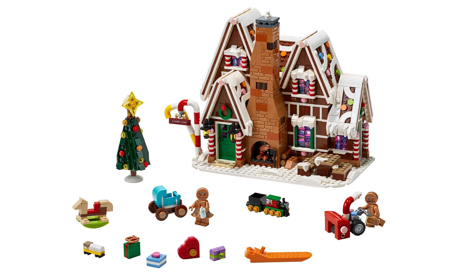 Élvezd az ünnepi építési- és játékélményt a LEGO® Creator Expert 10267 Mézeskalács házikójával! A varázslatos részletek kincsesládája ez a modell, amelyben ugyanúgy megtalálsz fagyos tetőt színpompás cukorka alakú gombokkal és finom homlokzatot cukorpálca oszlopokkal, mint csillogó ablakokat és egy magasra nyúló kéményt világító kandallóval. A házban egy sereg mókás részletet és cukorból készült bútorokat fedezhetsz fel, köztük egy ízléses hálószobával, benne csokoládé ággyal és vattacukor lámpával, és egy fürdőszobát az elmaradhatatlan toalettel és fürdőkáddal. Ez a csodálatos LEGO Mézeskalács házikó szolgál a mézeskalács család képzeletbeli kalandjainak helyszíneként. A gyermekek begyújthatják a barátságos kandallót, segíthetnek megtisztítani a hómaróval a járdát és behelyezhetik a mézeskalács kisbabát a kocsijába. A készlet egy feldíszített karácsonyfát is tartalmaz, becsomagolt ajándékokkal és játékokkal, amelyek között ott van egy hintaló és egy játékvonat. Ez a haladóknak való LEGO készlet ügyességet próbáló és jutalmazó építési élményt kínál, és nagyszerű ünnepi központi dísze lehet az otthonnak vagy az irodának. Találsz benne mézeskalács férfi, nő és gyermek figurát. 3 LEGO® figurát tartalmaz: egy mézeskalács embert, egy mézeskalács nőt és egy mézeskalács kisbabát. A Mézeskalács házikón találunk fagyos tetőt színpompás cukorka alakú gombokkal, egy gazdag homlokzatot cukorsüveg oszlopokkal és sétapálcákkal, csillogó ablakokat és egy magas kéményt világító kandallóval, valamint részletesen kidolgozott belső teret, kockákból épített babakocsit és egy hómarót. A Mézeskalács házikóban egy sereg mókás részletet és cukorszerű bútorokat fedezhetsz fel, köztük egy hálószobával, benne csokoládé ággyal és vattacukor lámpával, és egy fürdőszobát az elmaradhatatlan toalettel és fürdőkáddal. A készlet egy karácsonyfát is tartalmaz, becsomagolt ajándékokkal és játékokkal, amelyek között ott van egy hintaló és egy játékvonat. Nézd meg a fincsi cukorpálca útjelző táblákat! Nyomd le a kéményfüst gombot, hogy világítson a láng! A gyermekek imádni fogják a fantáziajátékot a mézeskalács családdal. Segíts a mézeskalács hölgynek elhelyezni a mézeskalács babát a kocsiban! A kiegészítő elemek közt találsz egy cumisüveget, csészéket, serpenyőt és egy fejszét. A különleges elemek között találsz egy 2019 augusztusi újdonságot, egy aranyrúd elemet sárgásbarna színben, és átlátszó 1x1 csillogó, lila színű kockákat. Méretei: több mint 21 cm magas, 26 cm széles és 13 cm mély.